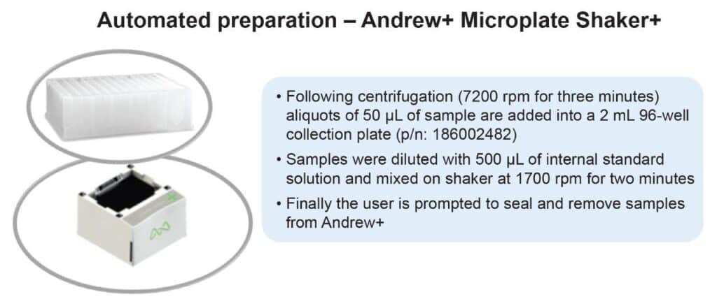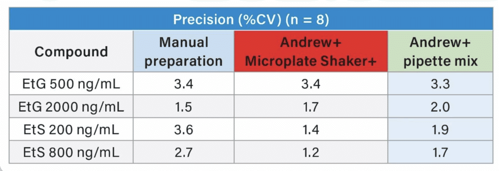 Automate the ‘dilute and shoot’ sample prep for EtG and EtS in urine using the Andrew+ Robot and OneLab Software to boost efficiency, reduce error, and deliver reliable UPLC-MS/MS results with minimal hands-on time.