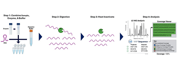 Visualize sequence coverage from automated RapiZyme protocols with Coverage Viewer—highlighting unique base modifications and streamlined RNA analysis using Andrew+ and OneLab.